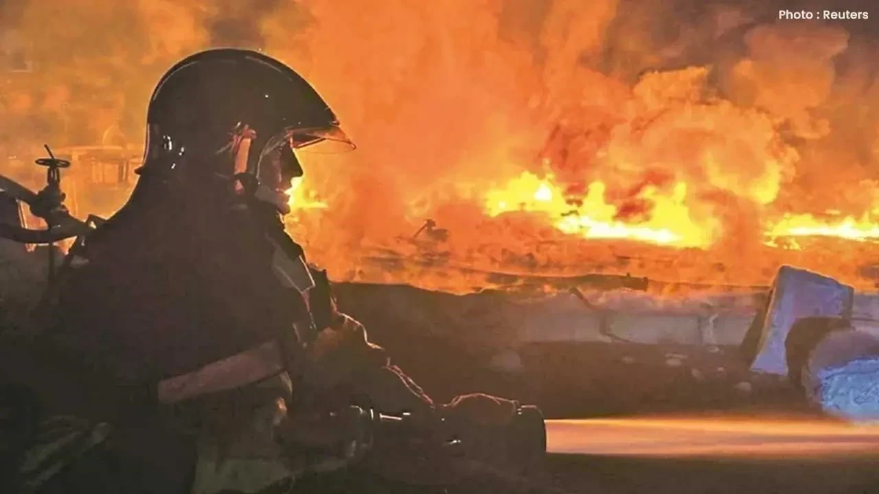 A massive container ship fire erupts at Los Angeles Port. Firefighters battle blaze, hazardous cargo