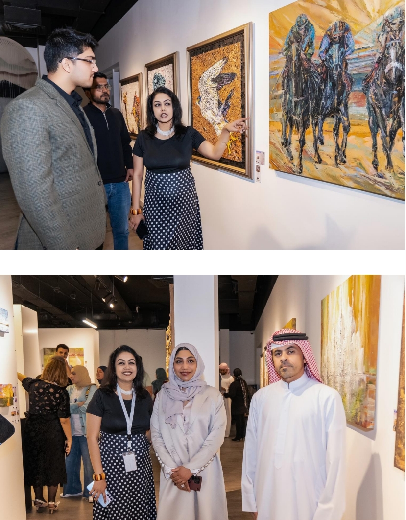 Exhibition was officially inaugurated by Chief Guest - H.E Yaqoob Al Ali in the presence of VIP Guests Maktoum Al Marzooqi, Eng. Dr. Zahra Al Darwish, Sana Lamlih, Nadine Ellithy, Aaryan Singh, Abeer Abdullah, Ahmed Khaled, Umer Hayat, Peter Farrington, Mohsen Ebadi, Reem Alsubiy and other art enthusiasts and art lovers.
