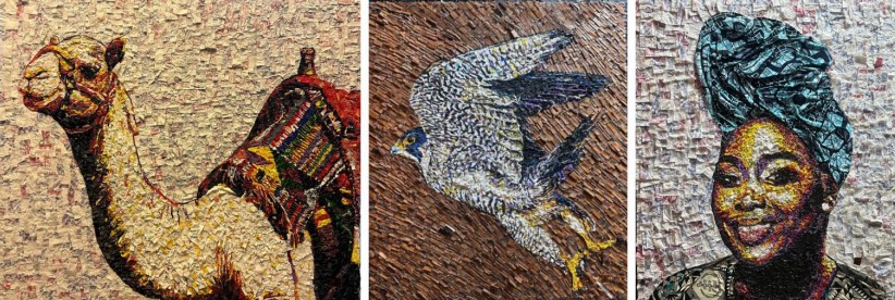 In Reflection, an African artist based in the UAE presents a mosaic blending recycled leather and plastics to symbolize sustainability and storytelling. A majestic falcon, central to both African and Emirati heritage, soars against a textured backdrop, embodying resilience, tradition, and adaptation. The artwork celebrates cultural confluence and environmental renewal. In the heart of an exhibition titled Reflection, an African artist now calling the United Arab Emirates, home presents a breathtaking mosaic that transcends boundaries of culture, history, and art. The 3 art pieces, crafted from recycled materials, symbolizes the intersection of sustainability& storytelling. This practice resonant with both African and Emirati traditions of resourcefulness and respect for the earth. It is a testament to the artist's commitment to renewal and transformation. This earthy foundation serves as a metaphorical landscape—an intricate tapestry that connects the artist’s African roots with the vast deserts of the UAE. His art symbolizes the artist’s own journey of migration, adaptation, and integration and flourishing in this land of opportunity & cultural confluence